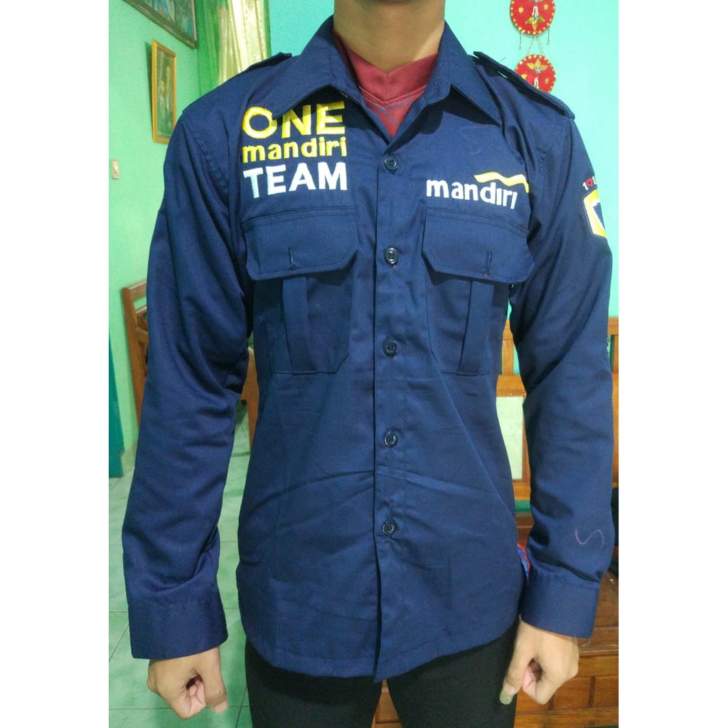 Baju kemeja seragam pdl pria wanita bank one mandiri team bordir pjg.